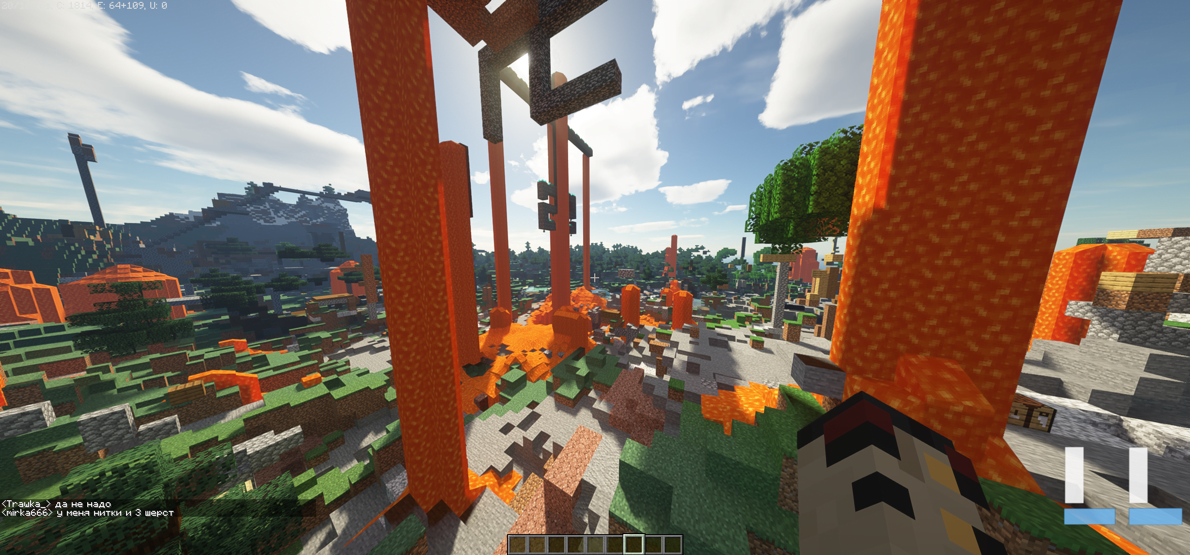Приваты — отсутствуют. Запреты — отсутствуют. Плагины на /spawn /home /region и т.д — ОТСУТСТВУЮТ. Вас могут легко убить, к вам может прилететь иссушитель, или вы помрёте от голода, т.к еду на этом сервере добыть ОЧЕНЬ проблематично.