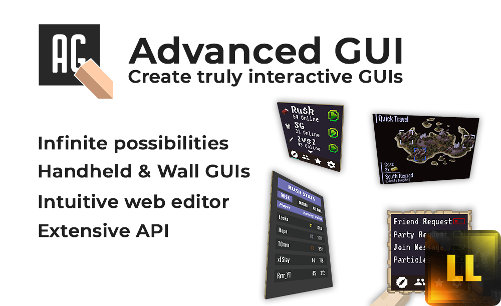 Поместите файл макета .json в папку Layout/ AdvancedGUI и выполните «/ag reload». Теперь ваш графический интерфейс должен быть доступен в игре. Вы можете увидеть все свои макеты с помощью «/ag макетов».