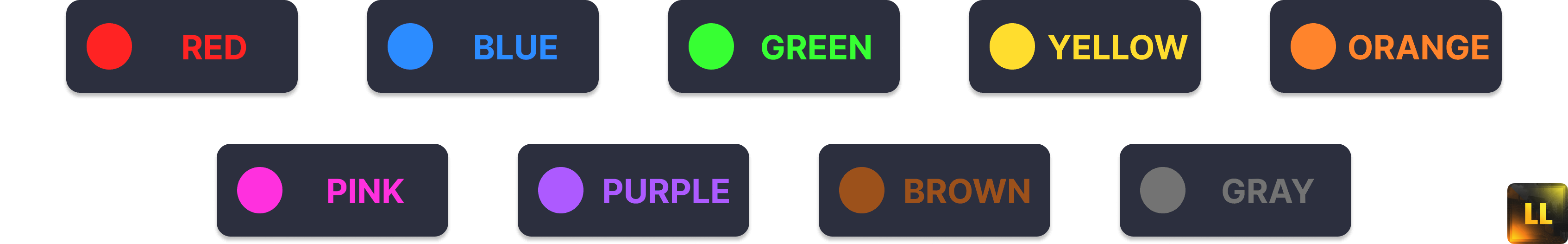 - 9 различных цветовых вариаций, как показано ниже.