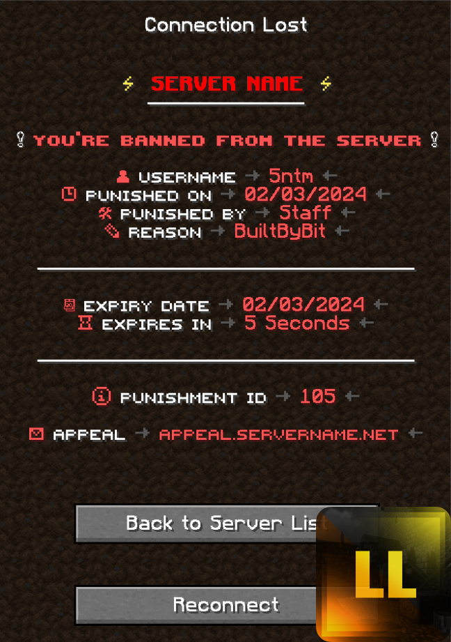 Готовый красивый дизайн для плагина LiteBans, доступен в красных, синих, зеленых и многих других цветах! Имеет готовые иконки и стилизованные сообщения, что позволит сэкономить время на настройку плагина самостоятельно!