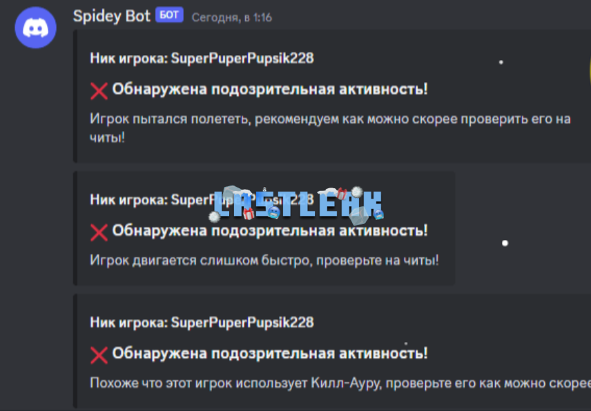 # придет сообщение: "Игрок пытался полететь, рекомендуем как можно скорее проверить его на читы!"