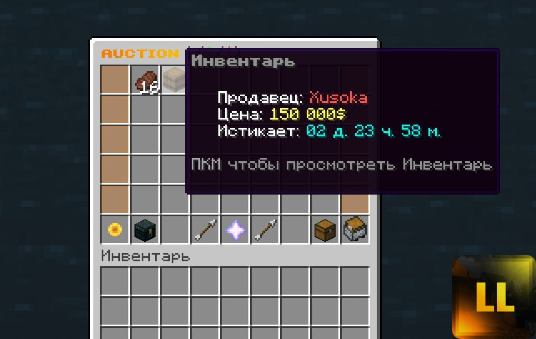 2. /ah sellinventory <Сумма> - Продажа сразу большего количества предметов