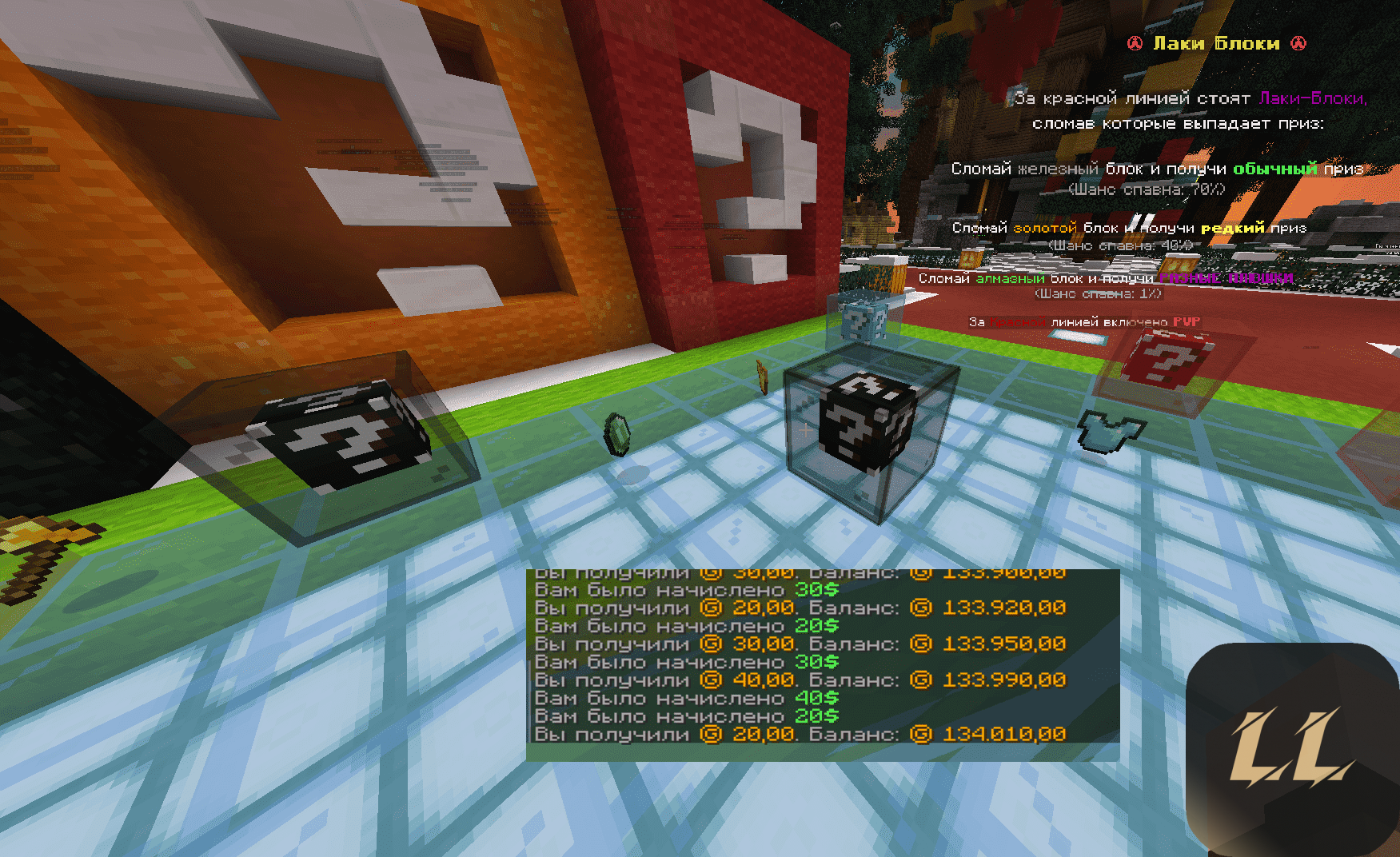В лаки блоках можно получить привилегии, предметы или добавить выполнение определенной команды для игроков. Отлично подойдет для PvP арен!