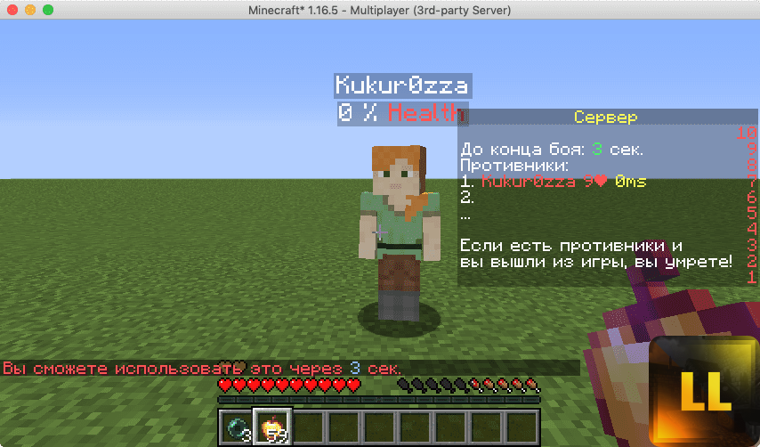 # Если идет бой, то на игрока действуеют задержки "кд" на перки (эндер перлы, яблоки).