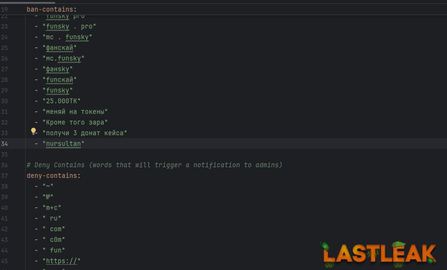 В плагине есть анти спам задержка на сообщение на плохие слова на запрещенные слова на запрещённые ссылки