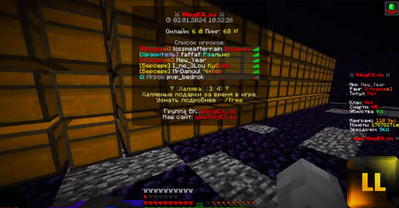 Сборка KingEx очень насыщенная разными плагинами, имеющая некоторые элементы FunTime, свои шары, дон ресы. Кастом боссы свои ивенты и разные измерения. Также присутсвуют свои крафты на незеритовую и алмазную броню с зачарование защита 4. На сервере есть скупщик - квесты которые обновляются. Я сам чистил сборку от бекдоров и хаков. Если что-то найдете пишите.