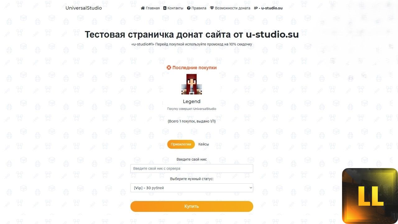 UniversalStudio #2 | Самописный, написанный под ключ сайт авто доната